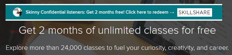 But seriously, I’ve gotten so much value from this podcast – from a FREE Two Months of Skillshare (click pic below!) to Productivity & Lifestyle Hacks, they are relateable, down-to-earth, and just FUN to listen to.